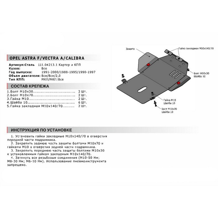 | Назначение защиты | Защита картера и КПП |