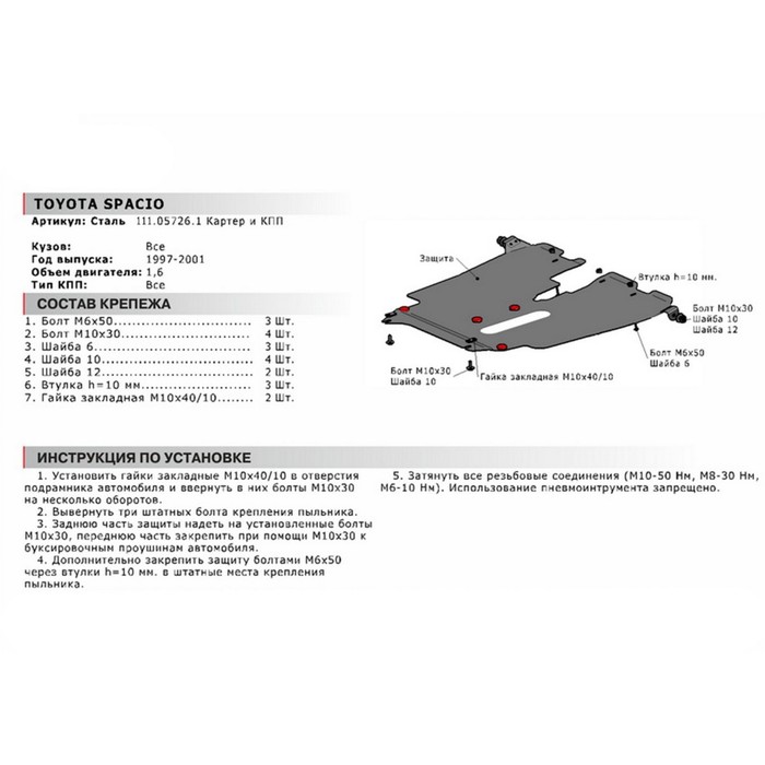 Не секрет, что машина давно уже перестала восприниматься как просто средство передвижения, и водители покупают всё лучшее для своих железных коней. Защита картера и КПП АвтоБРОНЯ для Toyota Spacio (V - 1.6) 1997-2001, крепеж в комплекте, сталь, 2 мм, 111.05726.1 — идеальный выбор, если вы ставите целью и улучшение технических характеристик, и поддержание внешнего вида автомобиля.