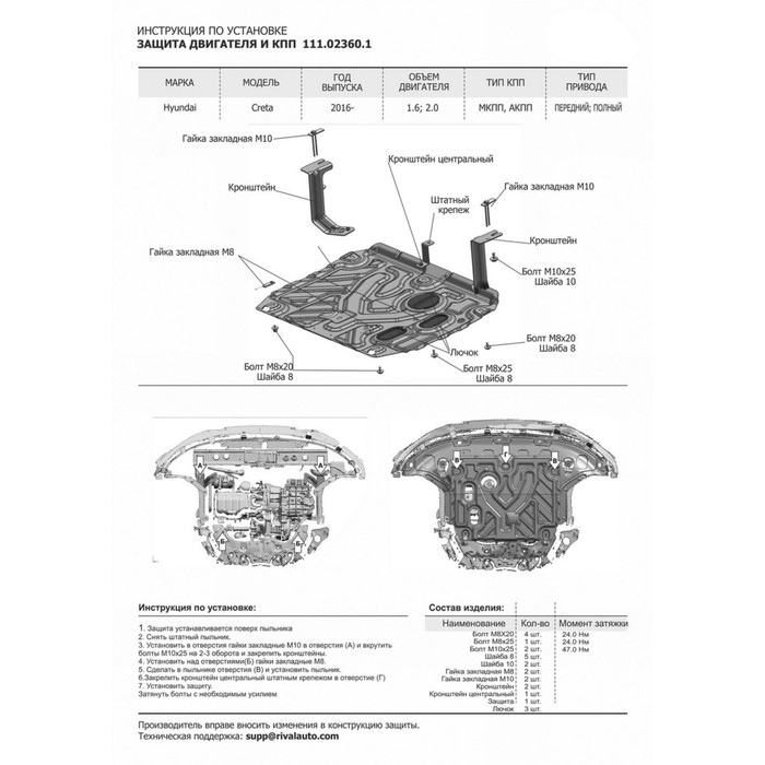 Не секрет, что машина давно уже перестала восприниматься как просто средство передвижения, и водители покупают всё лучшее для своих железных коней. Защита картера и КПП АвтоБРОНЯ (усиленная) для Hyundai Creta (V - 1.6; 2.0) 2016-н.в., крепеж в комплекте, сталь, 2 мм, 111.02360.1 — идеальный выбор, если вы ставите целью и улучшение технических характеристик, и поддержание внешнего вида автомобиля.