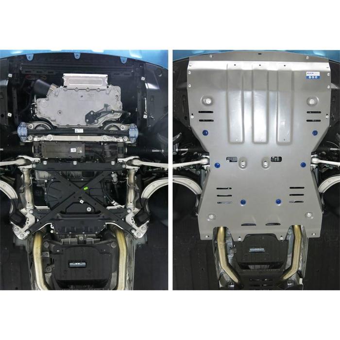 Защита картера и КПП Rival для Porsche Macan (V - 3.0; 3.6; 3.0d) 2014-, крепеж в комплекте, алюминий 4 мм