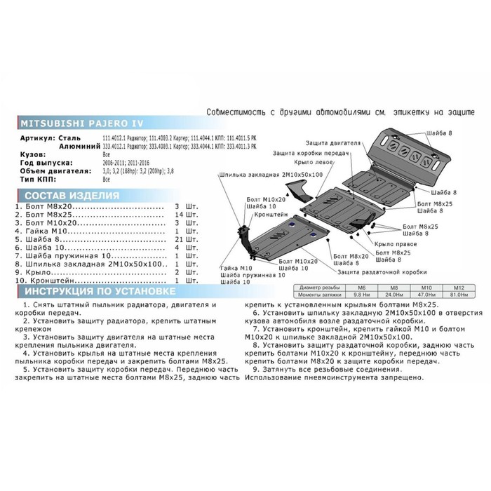 Защита картера Rival для Mitsubishi Pajero 1999-2006 2006-2011 2011-н.в., 111.4003.2
