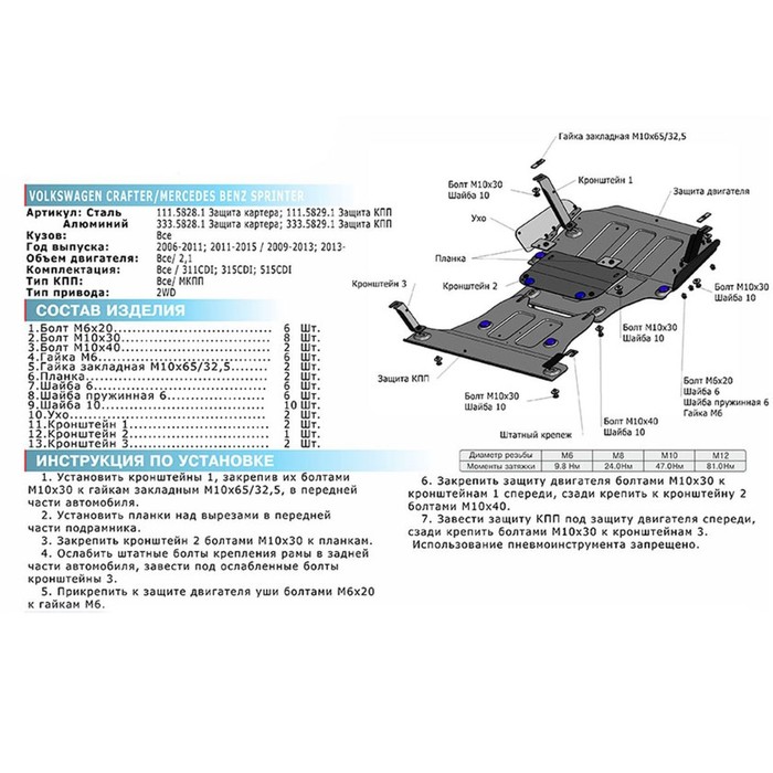 Защита картера Rival Volkswagen Crafter 2006-2015, 111.5828.1