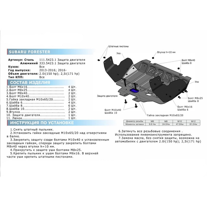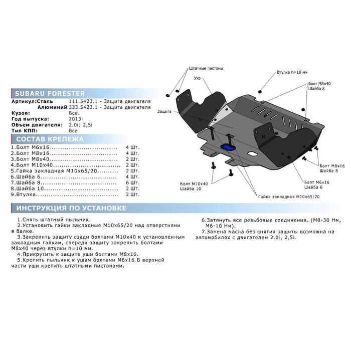 Защита картераRival для Subaru Forester 2013-2016 2016-н.в., 111.5423.1