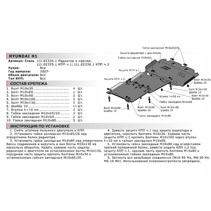 Защита КПП АвтоБРОНЯ (часть 2) для Hyundai H1 2015-н.в., крепеж в комплекте, сталь, 2 мм, 111.02336.1