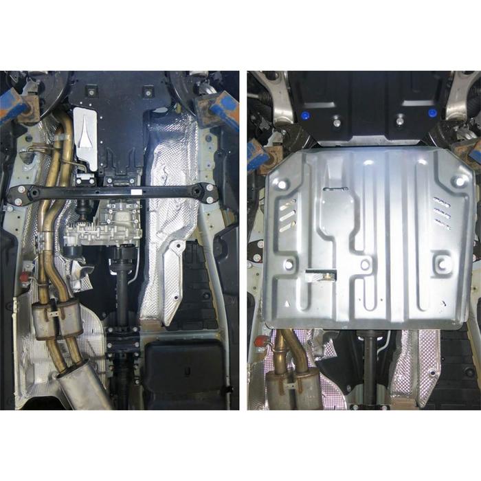 Не секрет, что машина давно уже перестала восприниматься как просто средство передвижения, и водители покупают всё лучшее для своих железных коней. Защита КПП и РК Rival для Volkswagen Touareg (V - 3.0d; 3.6) 2010-2014, крепеж в комплекте, алюминий 4 мм — идеальный выбор, если вы ставите целью и улучшение технических характеристик, и поддержание внешнего вида автомобиля.
