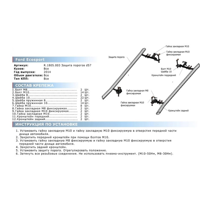 Не секрет, что машина давно уже перестала восприниматься как просто средство передвижения, и водители покупают всё лучшее для своих железных коней. Защита порогов Ford Ecosport, d57 — идеальный выбор, если вы ставите целью и улучшение технических характеристик, и поддержание внешнего вида автомобиля.