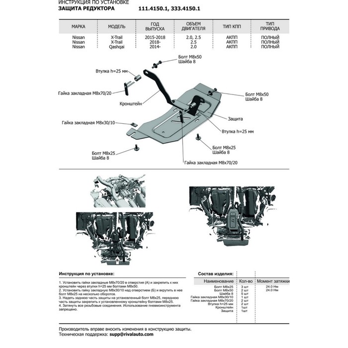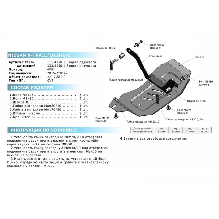 Защита редуктора Rival для Nissan Qashqai 2014-н.в., 111.4150.1