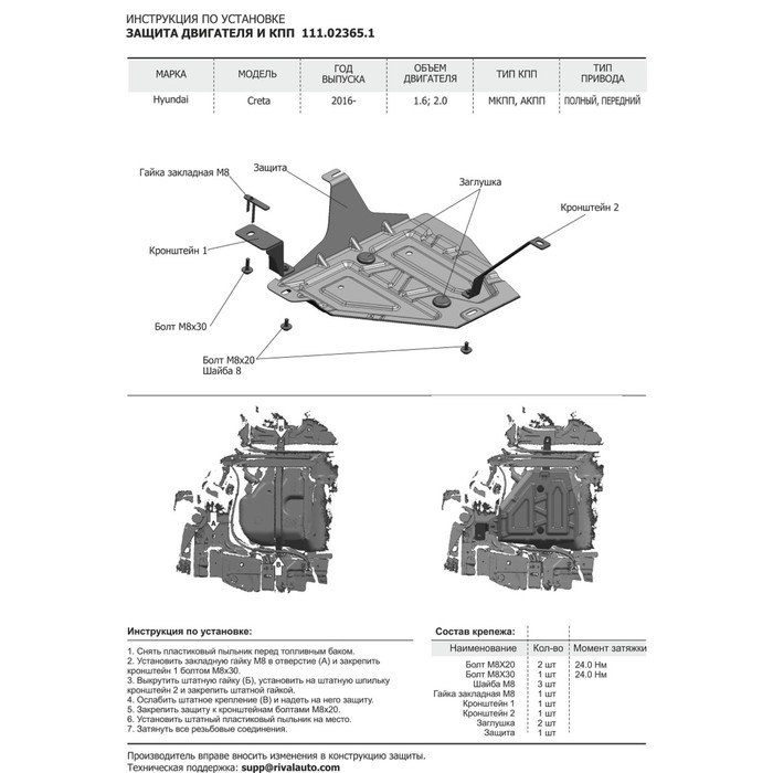 Не секрет, что машина давно уже перестала восприниматься как просто средство передвижения, и водители покупают всё лучшее для своих железных коней. Защита топливного бака АвтоБРОНЯ для Hyundai Creta (V - 1.6; 2.0) 2016-н.в., крепеж в комплекте, сталь, 2 мм, 111.02365.1 — идеальный выбор, если вы ставите целью и улучшение технических характеристик, и поддержание внешнего вида автомобиля.