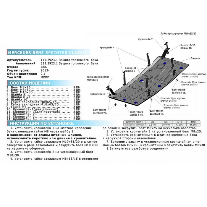 Защита топливного бака Rival для Mercedes Benz Sprinter Classic 2013-н.в., 111.3923.1