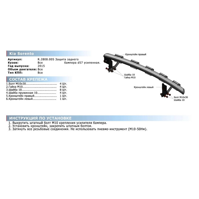 Не секрет, что машина давно уже перестала восприниматься как просто средство передвижения, и водители покупают всё лучшее для своих железных коней. Защита заднего бампера Kia Sorento Prime, d57 усиленная — идеальный выбор, если вы ставите целью и улучшение технических характеристик, и поддержание внешнего вида автомобиля.