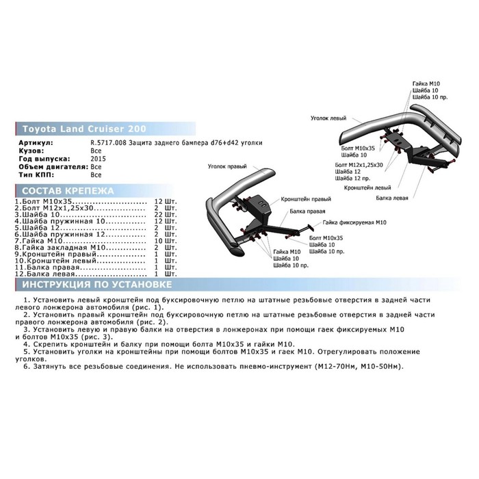 Не секрет, что машина давно уже перестала восприниматься как просто средство передвижения, и водители покупают всё лучшее для своих железных коней. Защита заднего бампера Toyota Land Cruiser 200 2015-, d76+d42 уголки — идеальный выбор, если вы ставите целью и улучшение технических характеристик, и поддержание внешнего вида автомобиля.