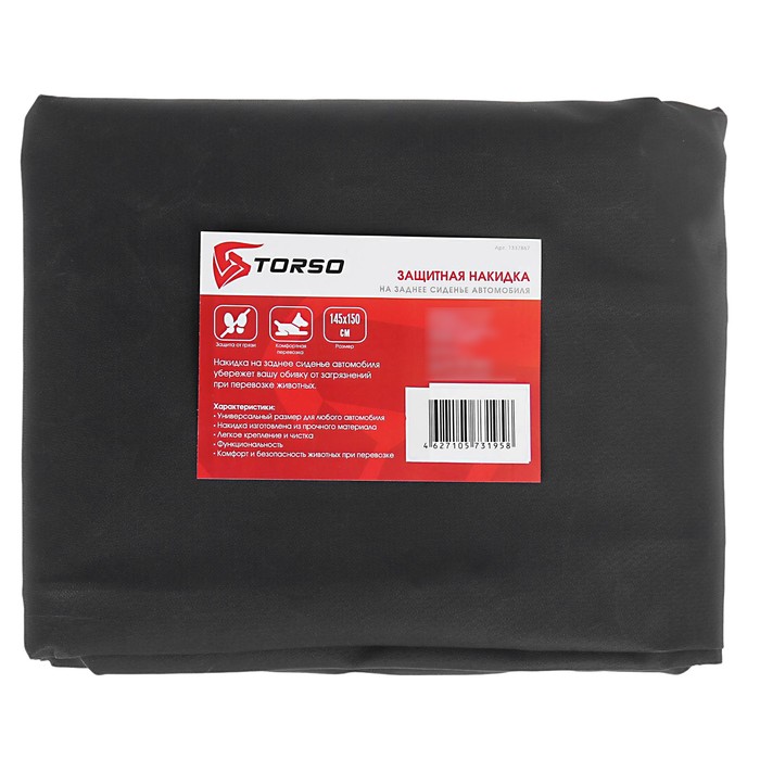 Защитная накидка на заднее сиденье TORSO, для перевозки животных, черная