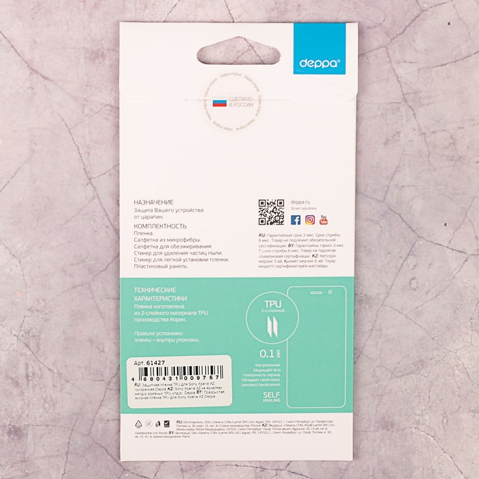 Защитная пленка Deppa TPU для Sony Xperia XZ/XZs, прозрачная