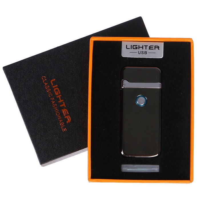 Зажигалка электронная в подарочной коробке, спираль, USB в комп-те, чёрная, 7.5х12 см
