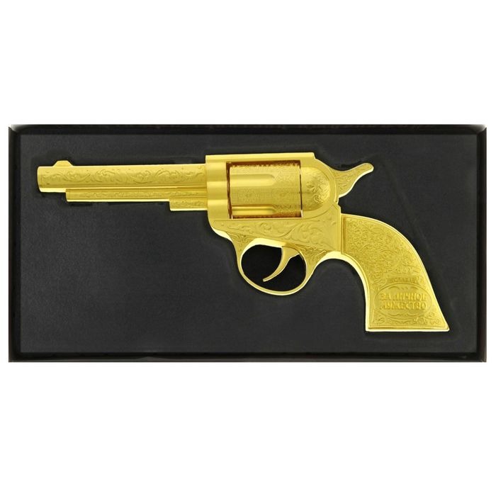 Зажигалка - револьвер газ "За личное мужество!" – это царский подарок для солидных мужчин. Он подчеркнет высокий статус обладателя. Презент является полноценной зажигалкой: им можно не только любоваться, но и использовать по назначению.