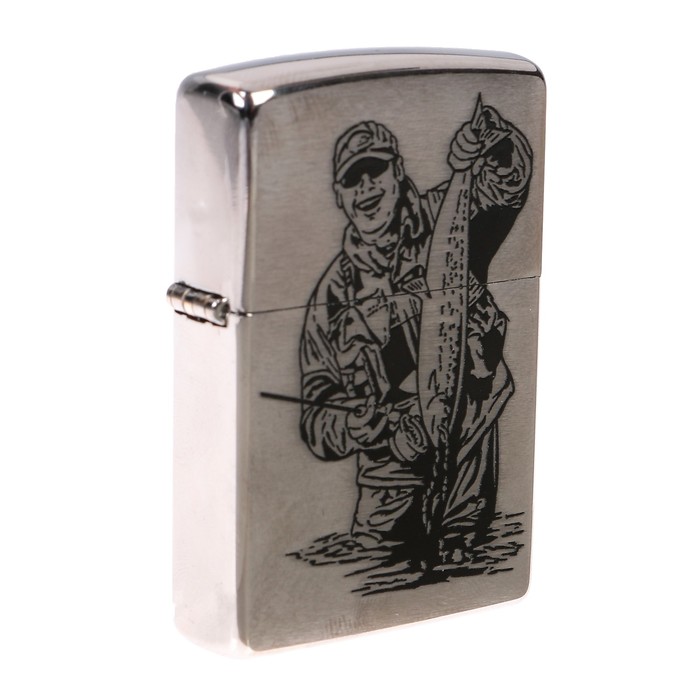 Зажигалка ZIPPO 200 Рыбак с покрытием Brushed Chrome