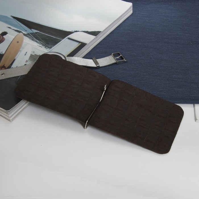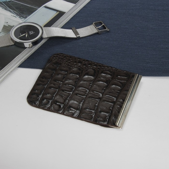 Зажим для купюр, с металлическим держателем, крокодил, цвет коричневый