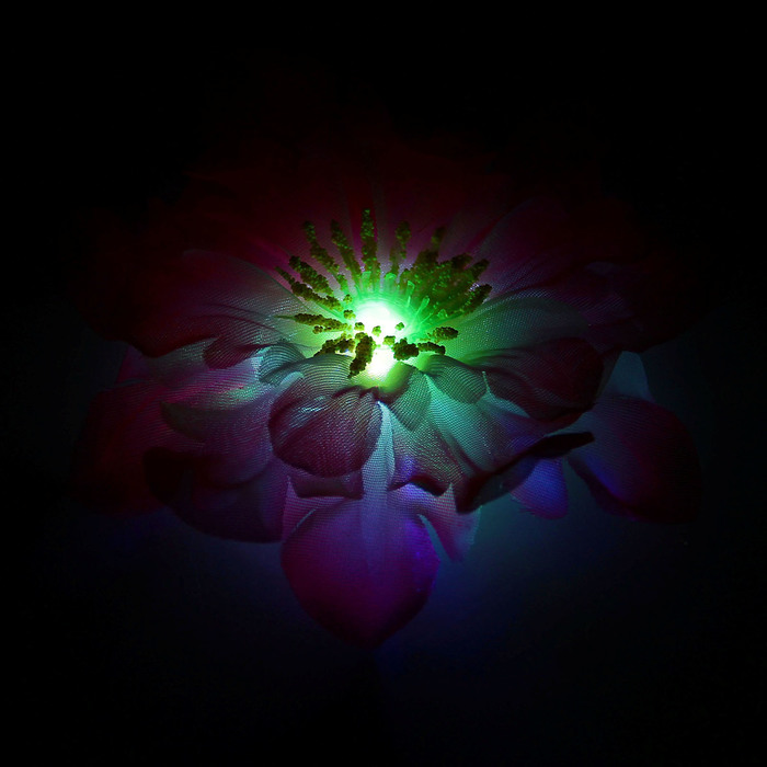 Решили устроить гавайскую вечеринку? Много одежды для такого праздника не потребуется: жизнерадостные островитяне привыкли жить налегке. Основное внимание уделите аксессуарам и ярким краскам. Зажим станет изысканным украшением для каждой девушки. Универсальный дизайн позволяет использовать его как в качестве декора интерьера, так и для украшения костюма и волос. Изящный цветок смотрится пышно, красочно и в то же время легко. Такой бутон заметен не только при свете дня — зажим с включающимся световым эффектом выделит вас из толпы и после заката. Останется добавить капельку цветочных духов, яркую помаду, лучезарную улыбку, и вы уже в самом центре Северной Полинезии.