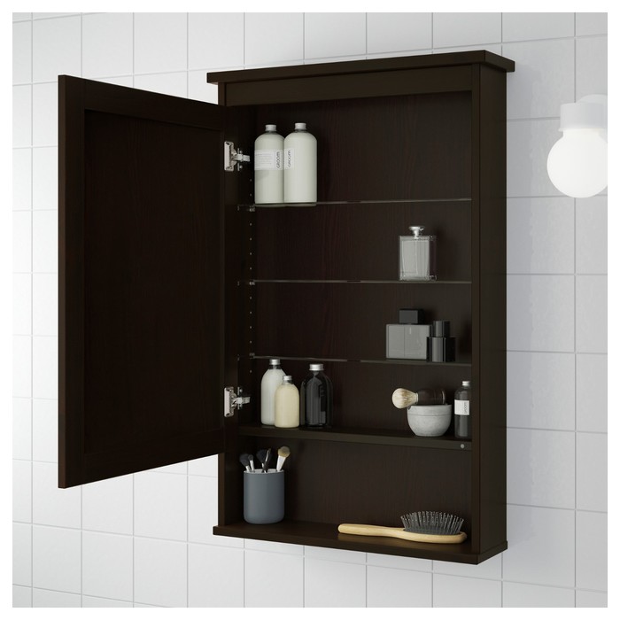 Зеркальный шкаф ХЕМНЭС, 1 дверца, 63x16x98 см, морилка черно-коричнев прекрасно впишется в интерьер ванной комнаты. Изделие выполнено из влагостойких материалов, которые надолго сохраняют первозданный внешний вид. Теперь хранить гигиенические принадлежности и поддерживать порядок будет легко и просто!