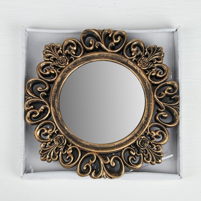 Зеркало декоративное «Вензеля», настенное, круглое, d=22см, цвет состаренное золото