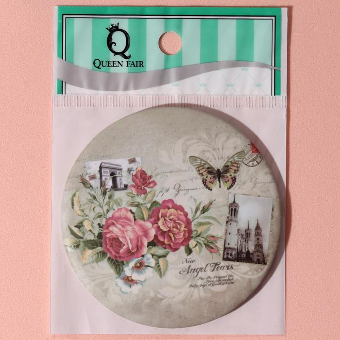 Зеркало компактное «Цветы», круглое, одностороннее, без увеличения, d=7,5см, цвет МИКС
