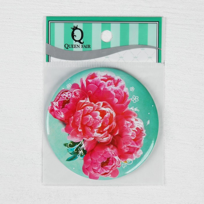 Зеркало компактное "Пионы", круглое, одностороннее, без увеличения, d=7,5см