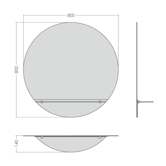 Зеркало круглое с полкой 80 см, 4 мм, полка сырое стекло 6 мм, белый, арт_39