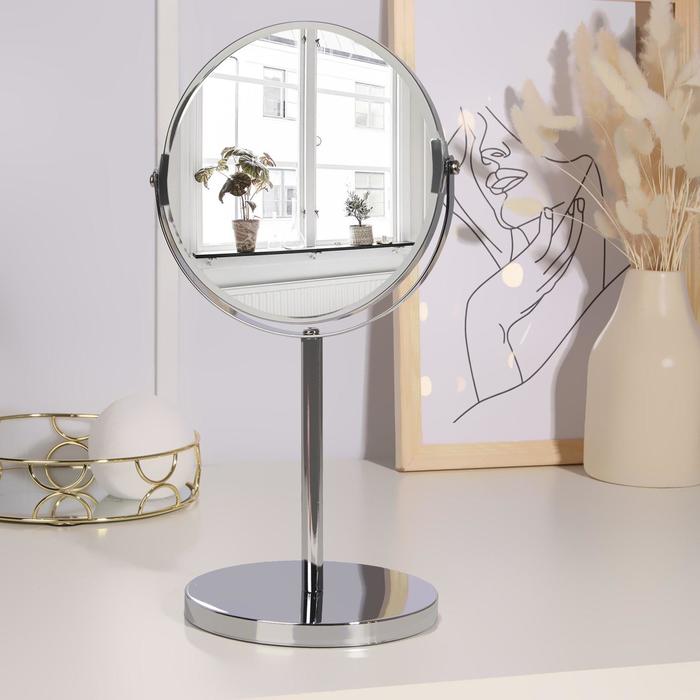 Зеркало на ножке, круглое, двустороннее, с двукратным увеличением, зеркальная поверхность-16см, цвет серебряный