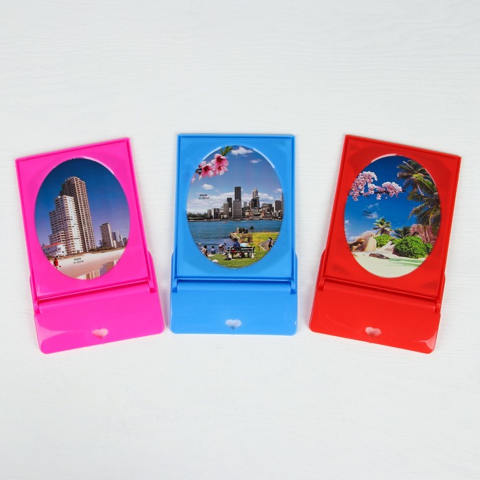 Зеркало на подставке, без увеличения, одностороннее, прямоугольное, зеркальная поверхность - 11х14см, цвет МИКС
