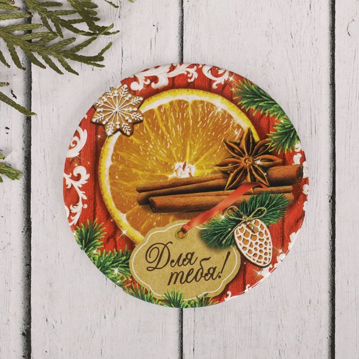 Рамочка изделия с красочным новогодним рисунком изготовлена из металла. Поставляется в ярком конверте.