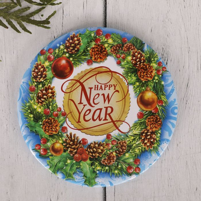 Рамочка изделия с красочным новогодним рисунком изготовлена из металла. Поставляется в ярком конверте.