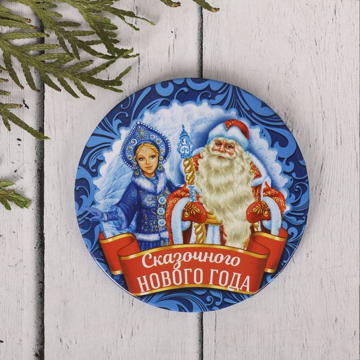 Рамочка изделия с красочным новогодним рисунком изготовлена из металла. Поставляется в ярком конверте.