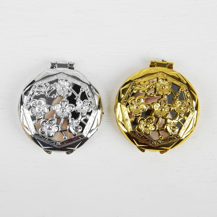Зеркало складное «Цветочки», круглое, без увеличения, двустороннее, d=8,5см, цвет МИКС