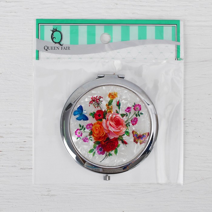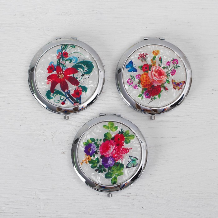 Зеркало складное «Цветочное ассорти», круглое, с двукратным увеличением, двустороннее, d=7см, разноцветное