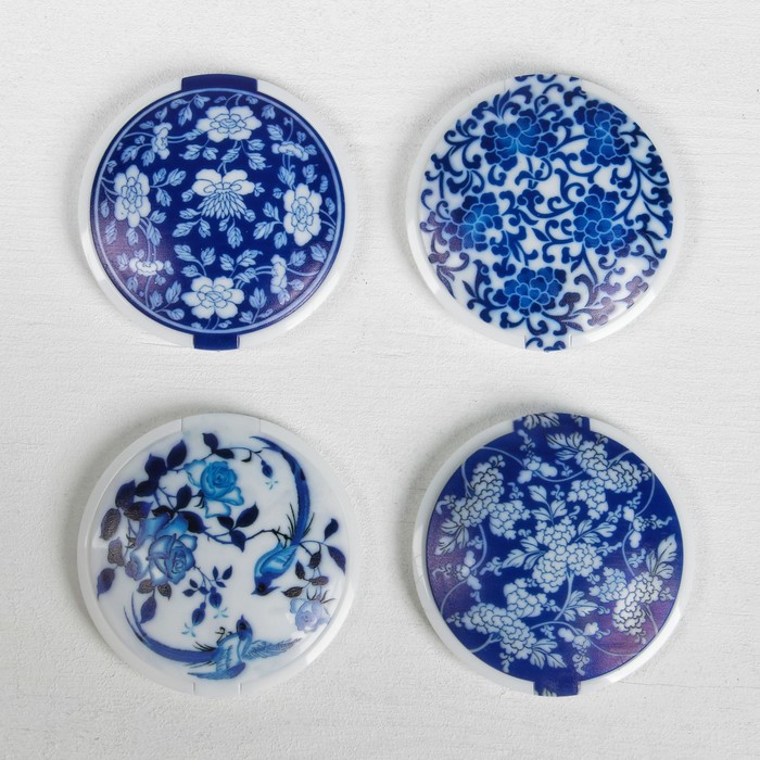 Зеркало складное «Гжель», круглое, двустороннее, с увеличением, цвет МИКС