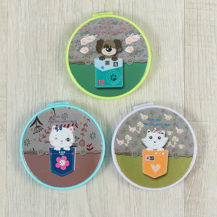 Зеркало складное «Кошечка», круглое, с двукратным увеличением, двустороннее, d=7см, цвет МИКС