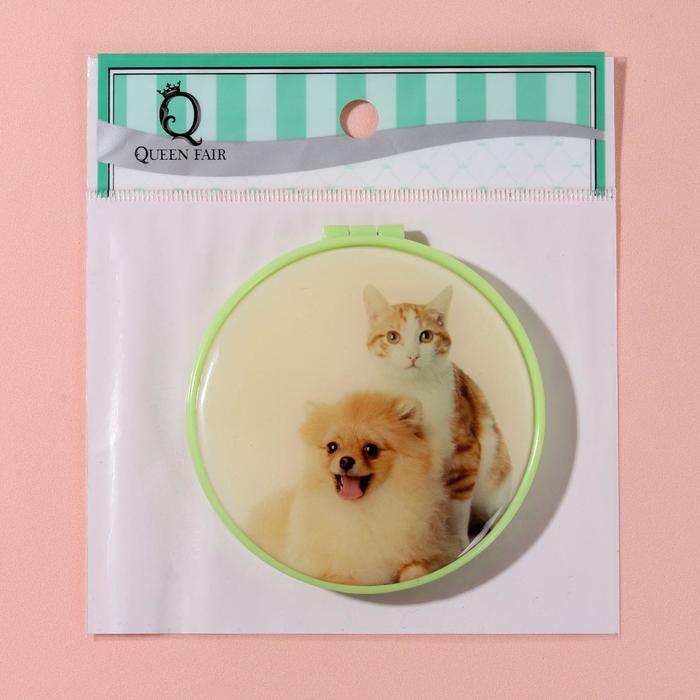 Зеркало складное «Щенки и котята», круглое, с двукратным увеличением, двустороннее, d=7см, цвет МИКС