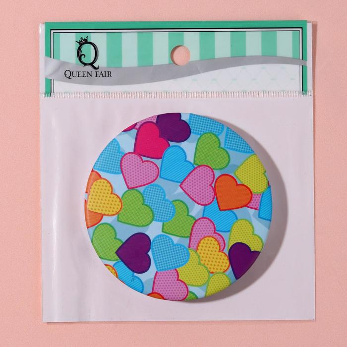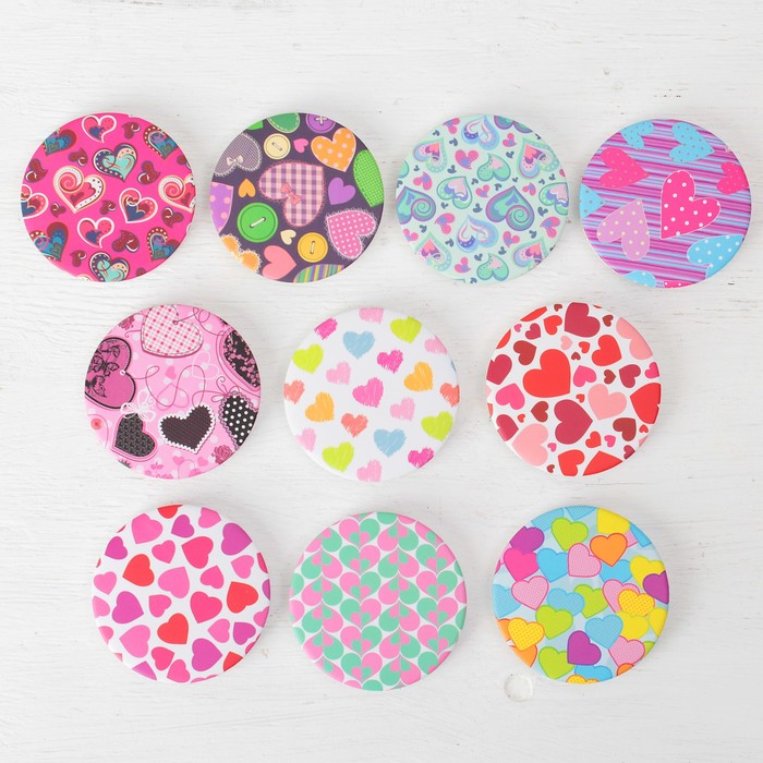 Зеркало складное «Сердца», круглое, без увеличения, двустороннее, d=7,5см, цвет МИКС