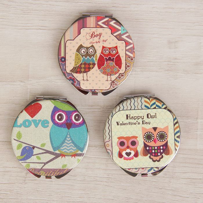 Зеркало складное «Совы», круглое, двустороннее, с двукратным увеличением, d=6см, цвет МИКС