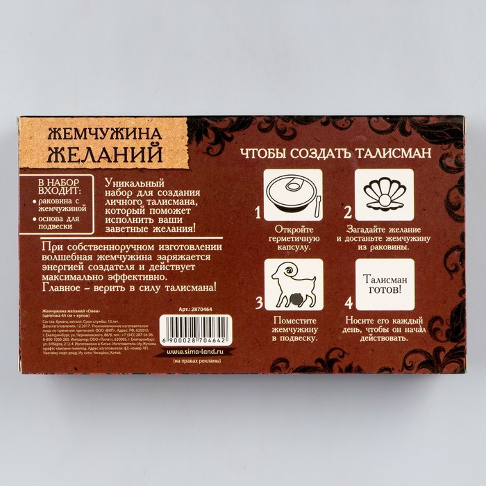 Жемчужина желаний "Зодиак-овен" (цепочка 45 см+кулон)