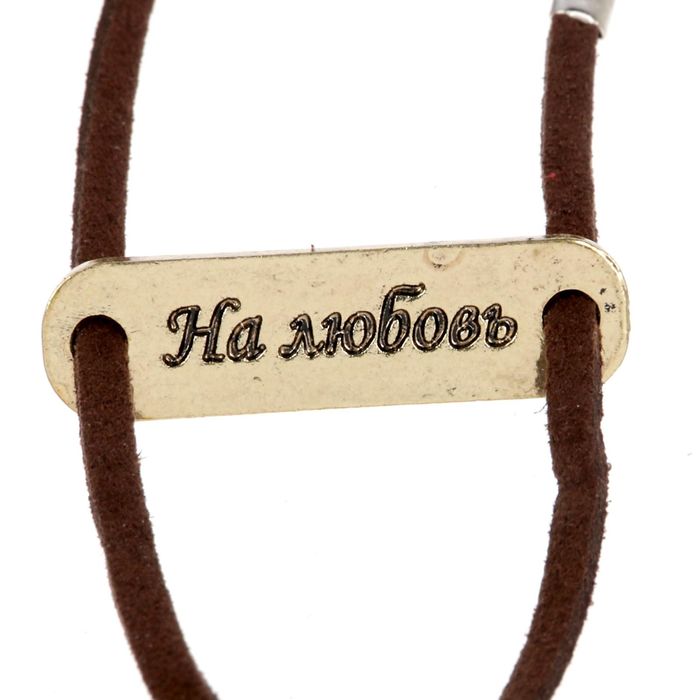 Аксессуар состоит из металлического шильда и замшевой верёвочки.