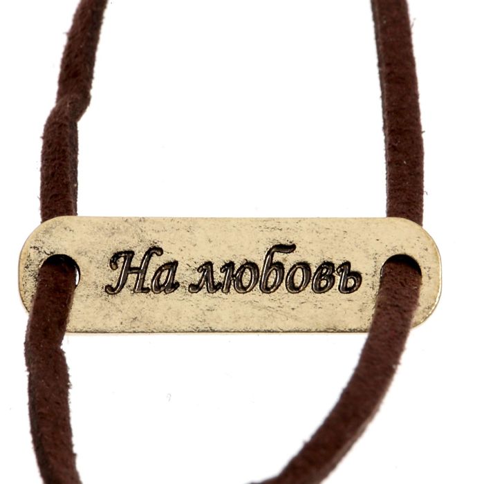 Аксессуар состоит из металлического шильда и замшевой верёвочки.