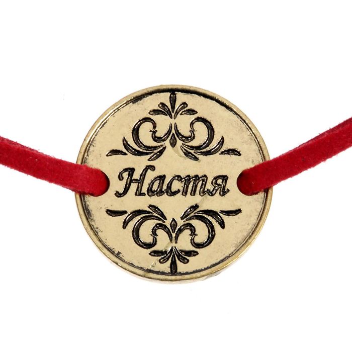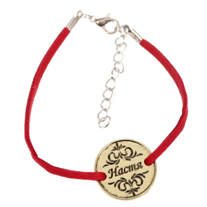 Женский браслет "Настя" состоит из металлического шильда и замшевой верёвочки.