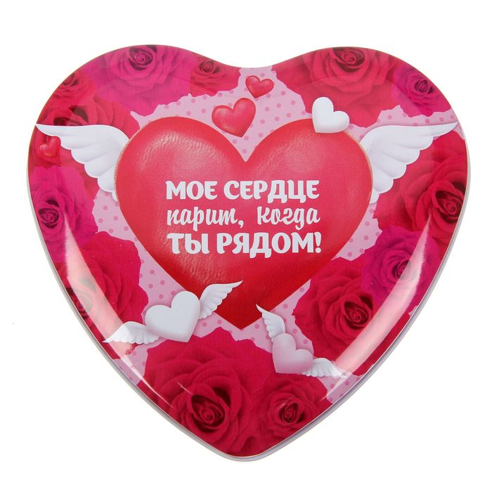 Жестяная шкатулка в форме сердца "Мое сердце парит, когда ты рядом!", 12 х 11 х 4,5 см