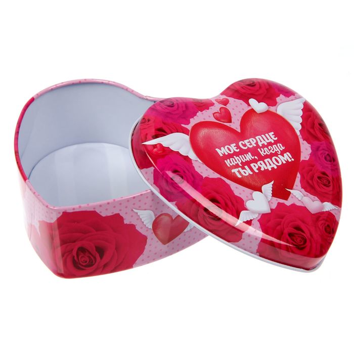 Если у вас есть ювелирные украшения и различная бижутерия, то обязательно должна быть и шкатулка. Тогда в нужный момент вы найдёте подходящий аксессуар или положите его на место, чтобы не потерять. Жестяная шкатулка в форме сердца "Мое сердце парит, когда ты рядом!", 12 х 11 х 4,5 см предназначена как раз для хранения украшений.