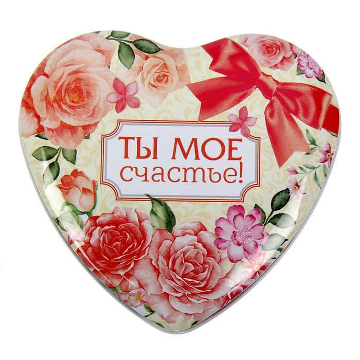 Жестяная шкатулка в форме сердца "Ты мое счастье!", 12 х 11 х 4,5 см