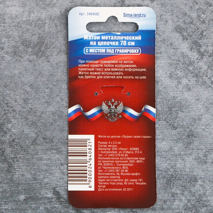 Невозможно представить нашу жизнь без праздников! Мы всегда ждём их и предвкушаем, обдумываем, как проведём памятный день, тщательно выбираем подарки и аксессуары, ведь именно они создают и поддерживают торжественный настрой. Жетон "Патриот своей страны", 4 х 2,5 см — это отличный выбор, который привнесёт атмосферу праздника в ваш дом!
