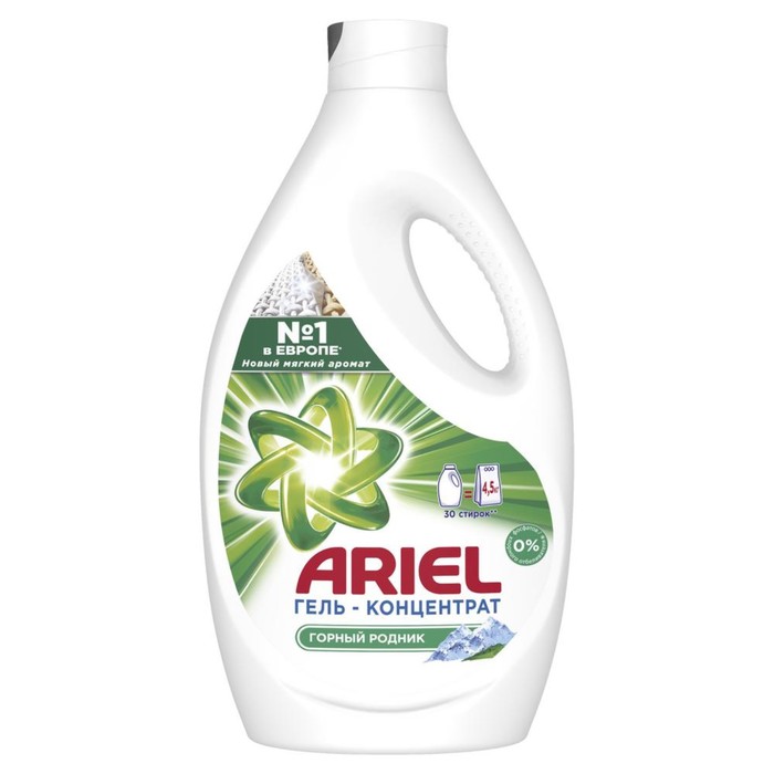 Жидкий стиральный порошок Ariel «Горный родник» превосходно отстирывает, не оставляет следов на одежде, ухаживает за тканью и защищает цвет. Средство предварительно обрабатывает вещи, очищает ткань и выводит пятна.