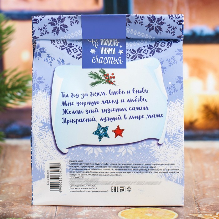 Жидкое мыло в пакете "Любимой мамочке в Новый год!" с ароматом спелой малины