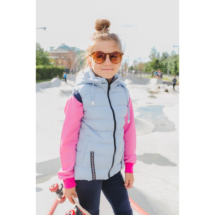 Жилет для девочки с капюшоном LOVE, св-голубой, рост 116-122 см